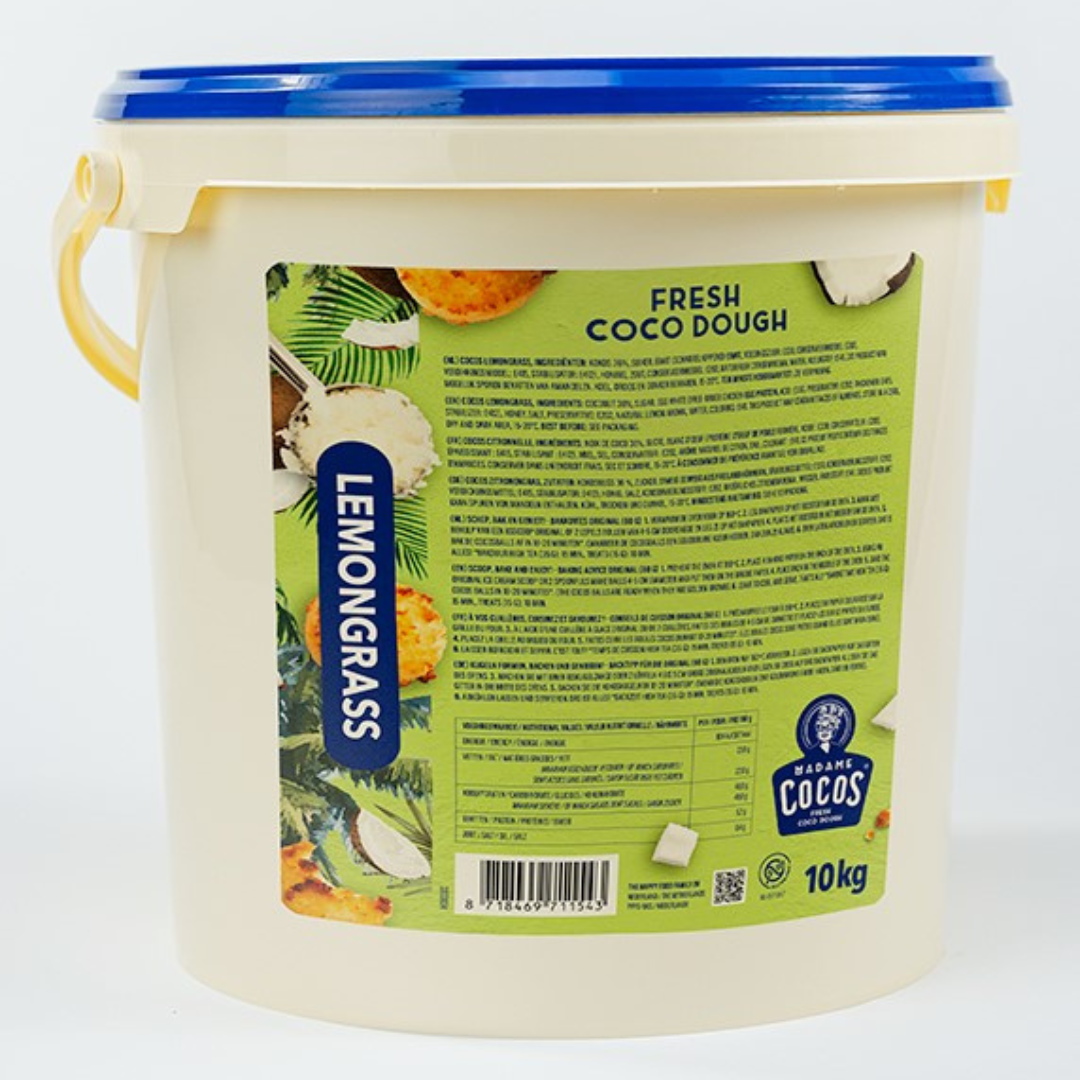 Kokos 36%, suiker, eiwit (scharrelkippenei-eiwit), voedingszuur: E330, conserveermiddel: E202, verdikkingsmiddel: E415, stabilisator: E412, honing, zout, conserveermiddel: E202, natuurlijk citroenaroma, water, kleurstof: E141.